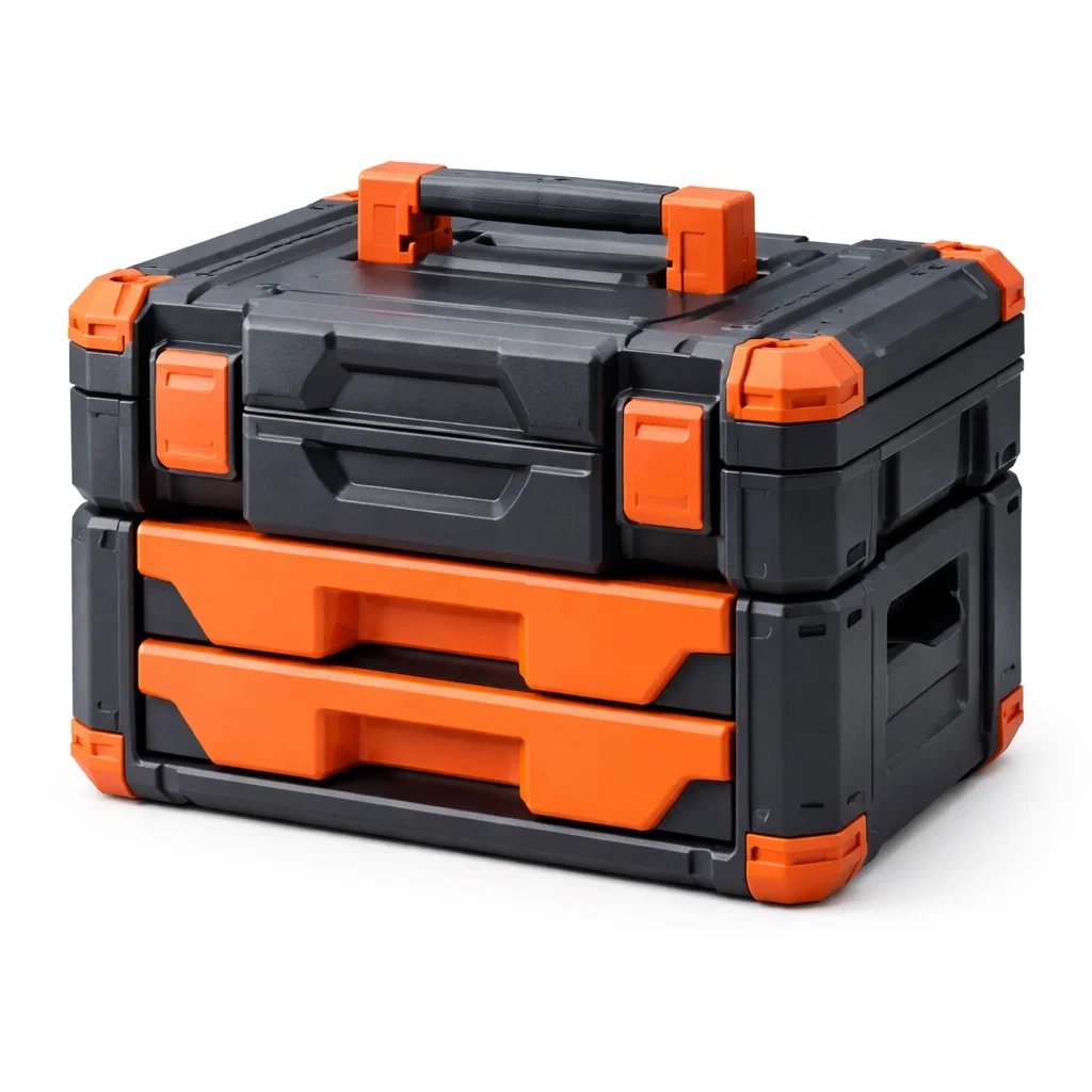 Cassetta degli attrezzi in Plastica con Cassetti Nero Arancione 45x30x35 cm