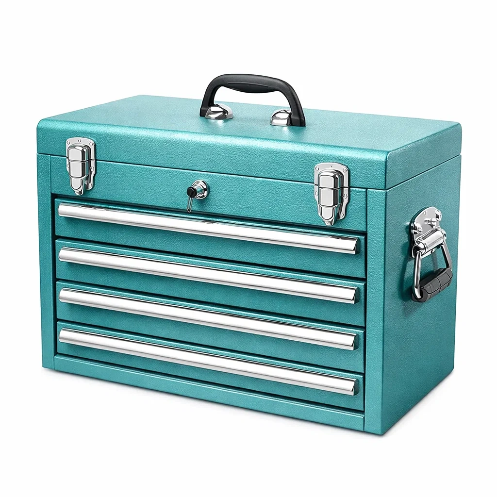 Cassetta degli attrezzi in Metallo con 4 Cassetti e Serratura Verde Acqua