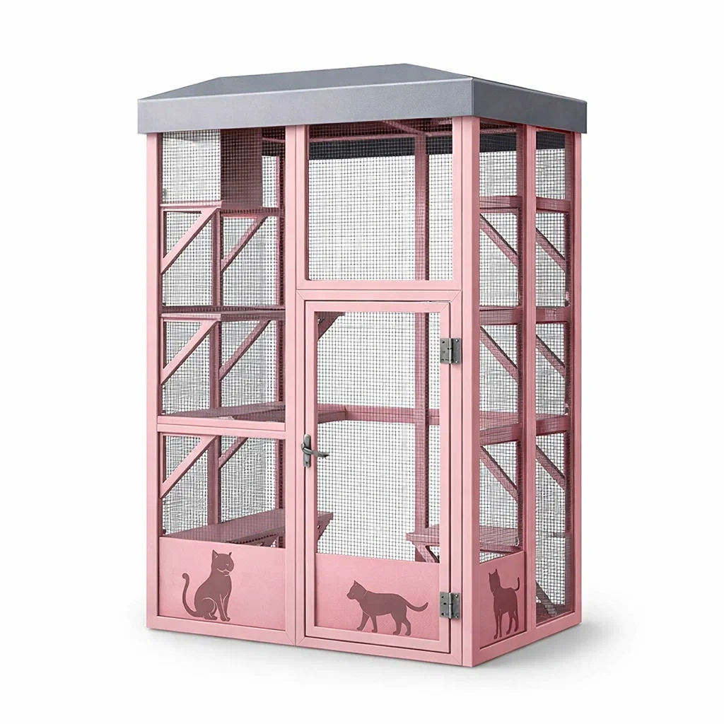 Gabbia per gatti in Acciaio Rosa con Rete in Acciaio e Tetto in Plastica 140x75x110 cm